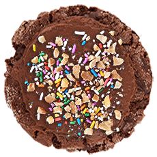 semisweet chocolate / chocolate frosting / sugar cone bits / peanut crumbles / sprinkles